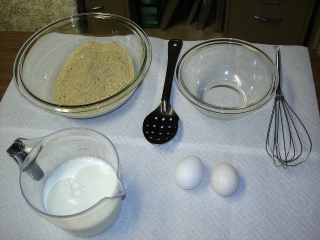 USE 2 EGGS AND 2 CUPS OF MILK WHIP THE EGGS IN A MEDIUM BOWL