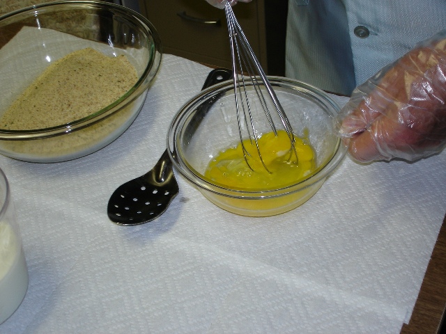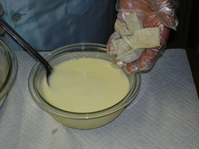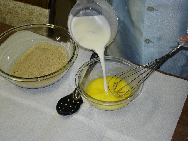 MIX MILK WITH EGGS WHIP MILK AND EGGS TO FORM A BATTER